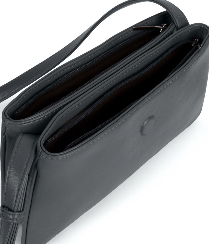 Sac a bandoulière qui se transforme en sac épaule avec deux compartiments zippés et fermeture a rabat magnétique.